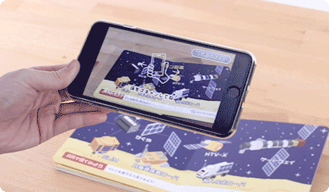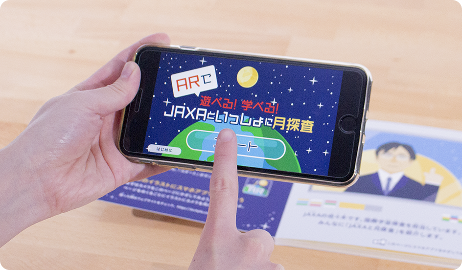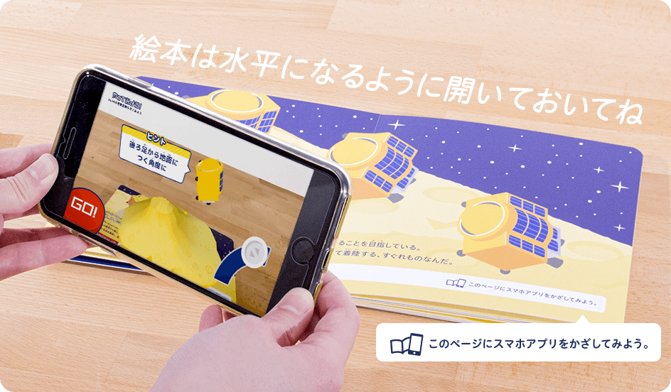「 ARで遊べる!学べる!JAXAといっしょに月探査」の絵本を開き、